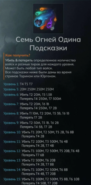 | Урон войск против IV тира | 2% | 6% | 10% | 14% | 18% | 23% | 27% | 32% | 38% | 44% | 50% | 57% | 64% | 71% | 80% | 80% |