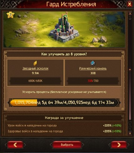 | Урон войск в нападении на города | 1% | 21% | 41% | 62% | 94% | 200% |